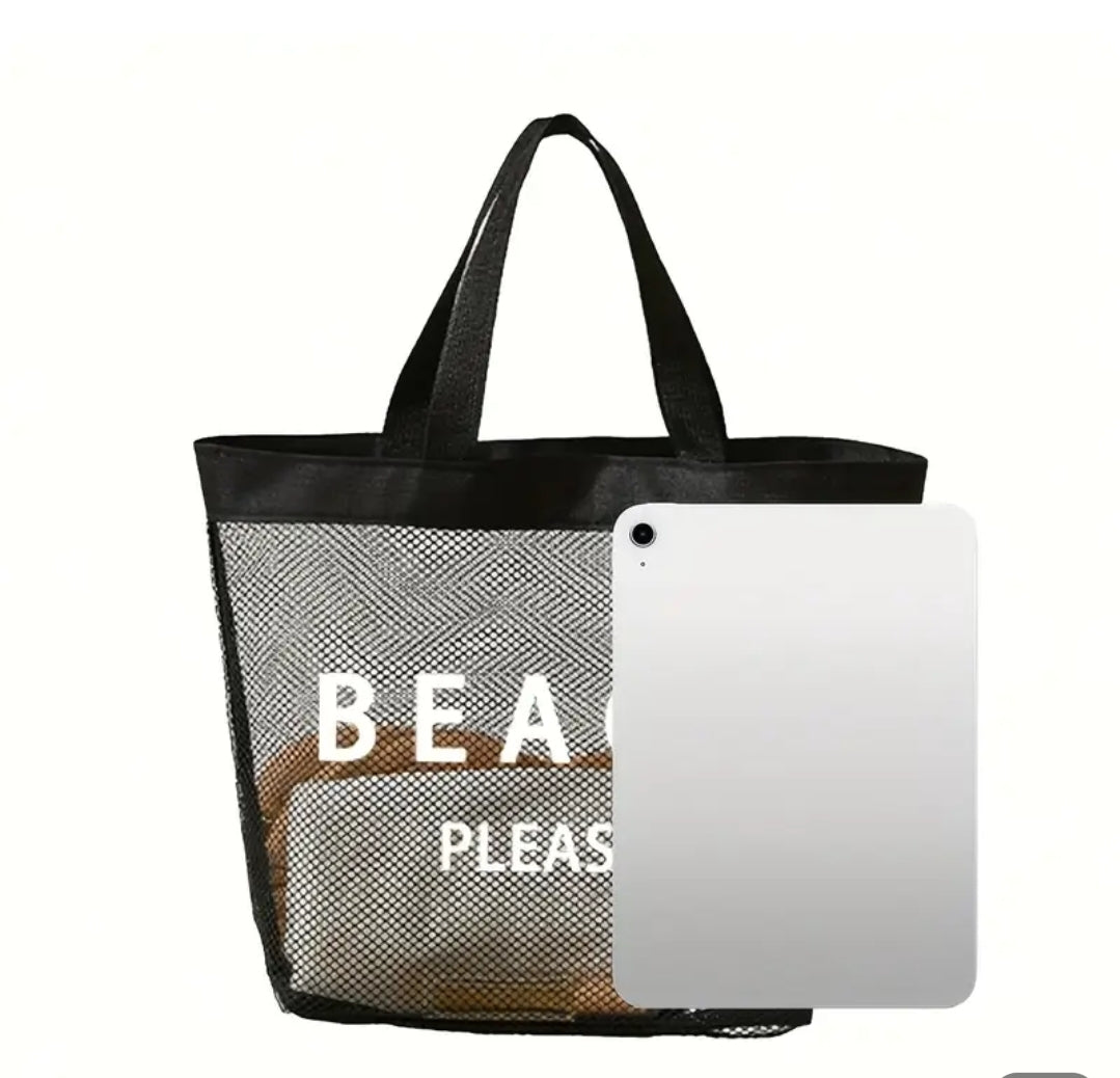 Mesh Tote bag with "Beach Please" inscription. Great for your next vacation.