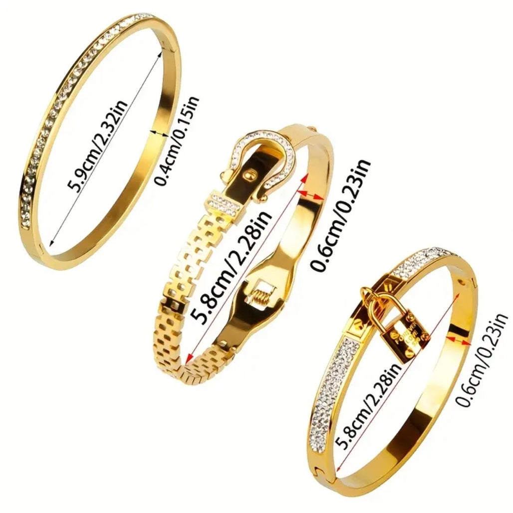 3pcs Simple multi-color Stainless Steel bracelet set with unique design, perfect for any occasion as a gift Stainless Steel bracelet is hypoallergenic